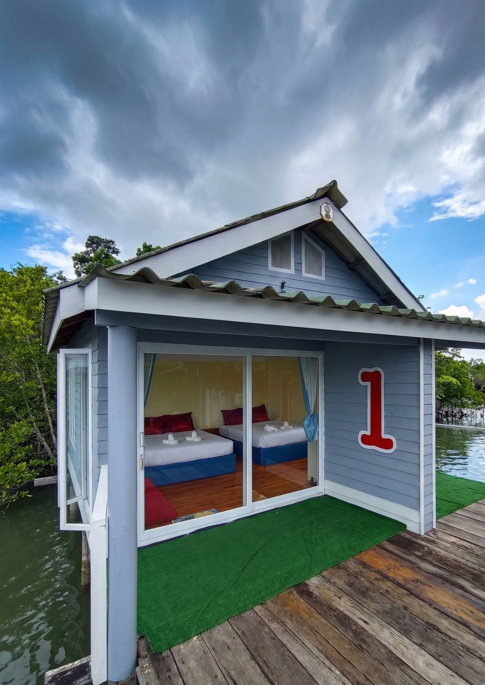สิ่งอำนวยความสะดวก - ที่นอน หมอน ผ้าห่ม พัดลม ห้องน้ำในตัว มีเรือนในทะเลสำหรับรับประทานอาหารหรือประกอบกิจกรรมต่างๆ กว้างขวาง เย็นสบาย